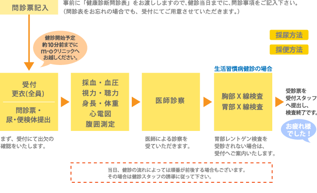 ここでは、『生活習慣病予防健診』の健診の流れについて簡単に説明いたします。